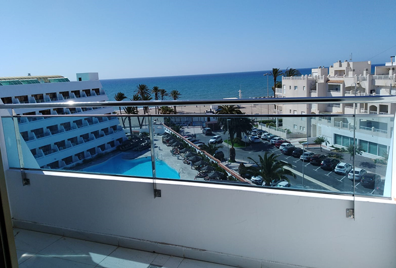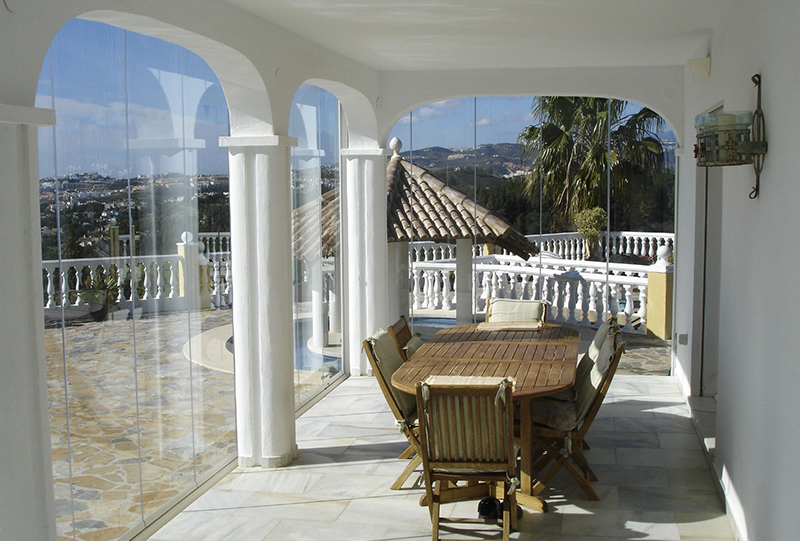 Cortina de Cristal sobre barandilla de vidrio y Estores Bandalux MotorizadosCerramientos Alugarsa2021-01-25T21:03:53+01:00