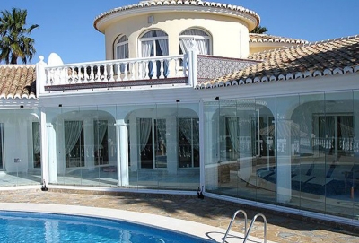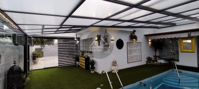 Techo móvil motorizado de policarbonato y cortinas de cristal en AlmeríaCerramientos Alugarsa2021-01-25T20:56:16+01:00